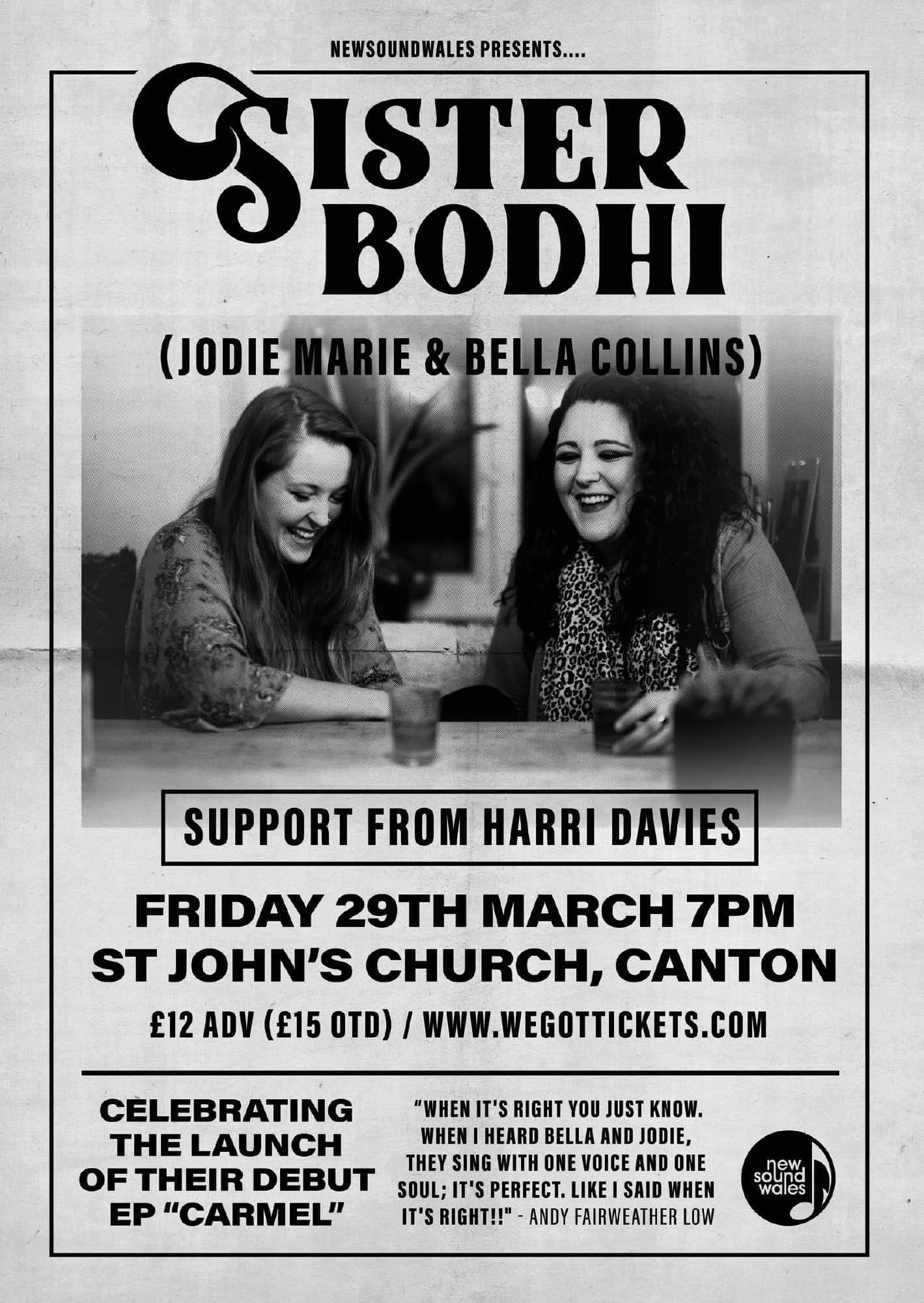 Sister Bodhi are heading for success with their debut EP set to be released in April happily titled ” Live At Carmel” these two incredibly gifted songwriters Bella Collins and Jodie Marie are destined to be on everyones lips in the near distance future.